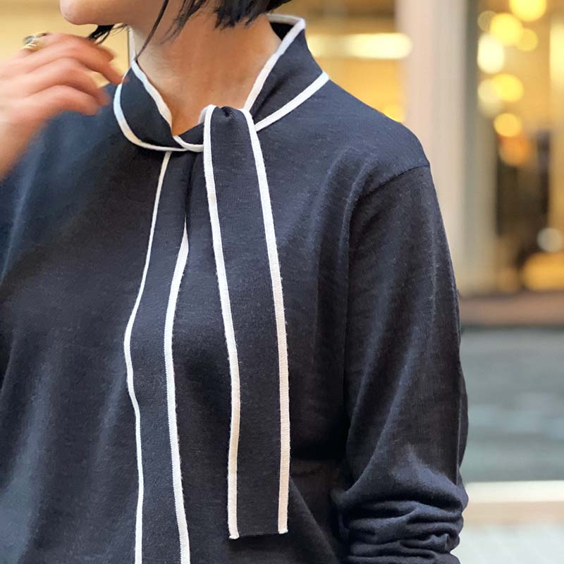 “クラシックモダン”というキーワードが耳慣れたものになってずいぶん経ちますが、その言葉の本質を、改めて新鮮に感じるこの秋。RIVERUSならではの様々なブランドミックスで表現したクラシックモダンスタイルです。タイをあしらったニット、チェックパターン、ハードなレザーライダースで仕上げ、と、気分は「ネオロンドン」。育ちの良いニットとスカートに、今を生きる女性たちの反骨マインドをレザーで表現した着こなし=クラシックモダン、裏テーマは反骨のエレガンスです。
