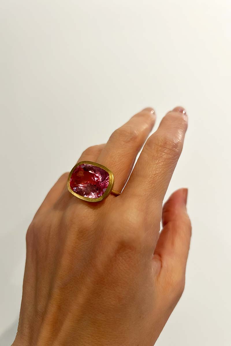 KUI CO.(クイ)のコレクションの中でも最も注目していただきたいのが、カラフルなサファイヤ。ダイヤモンドに次ぐ硬質な宝石、美しいブルーをイメージするストーンですが、実は元々は透明。膨大な時間をかけてナチュラルに発色したものが宝石となり、その自然なものもカラーが様々なのですが、こちらで使用しているのは加熱加工をしたカジュアルに使えるストーン。石それぞれが秘めている美しいカラーと透明感を加熱によって引き出し、ファッショナブルなジュエリーに使用可能なストーンをつくり出します。