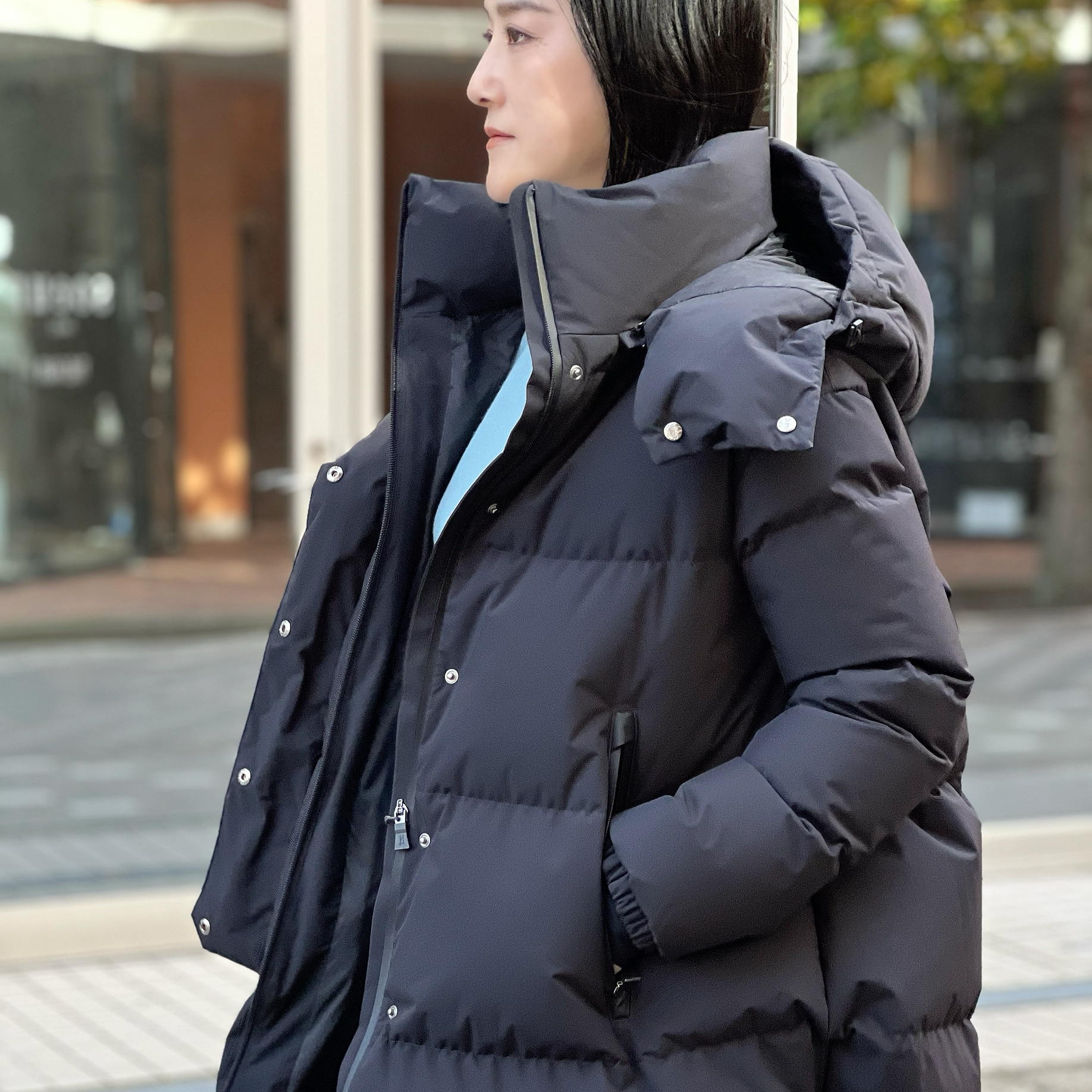 様々な貌をもつHERNO(ヘルノ)ですが、最もRIVERUSらしいといえるのが、“ファンクショナルワードローブ”ライン。撥水、防風、優秀な透湿性と、多彩な機能を備えながらも決して無骨でなく、むしろモードなかっこよさを表現してみせる“ファンクショナルワードローブ”。イタリアのクラフツマンシップと現代の融合が生み出す、HERNO(ヘルノ)ブランドの真骨頂です。ダウンならではの「ボリューム感」と「圧倒的な軽さ」が両立したこちらは、まさにウィンターシーズンのマストアイテム。あなたの毎日に、圧倒的な存在感を放ちます。
