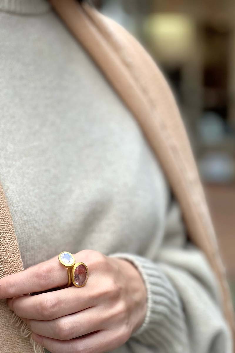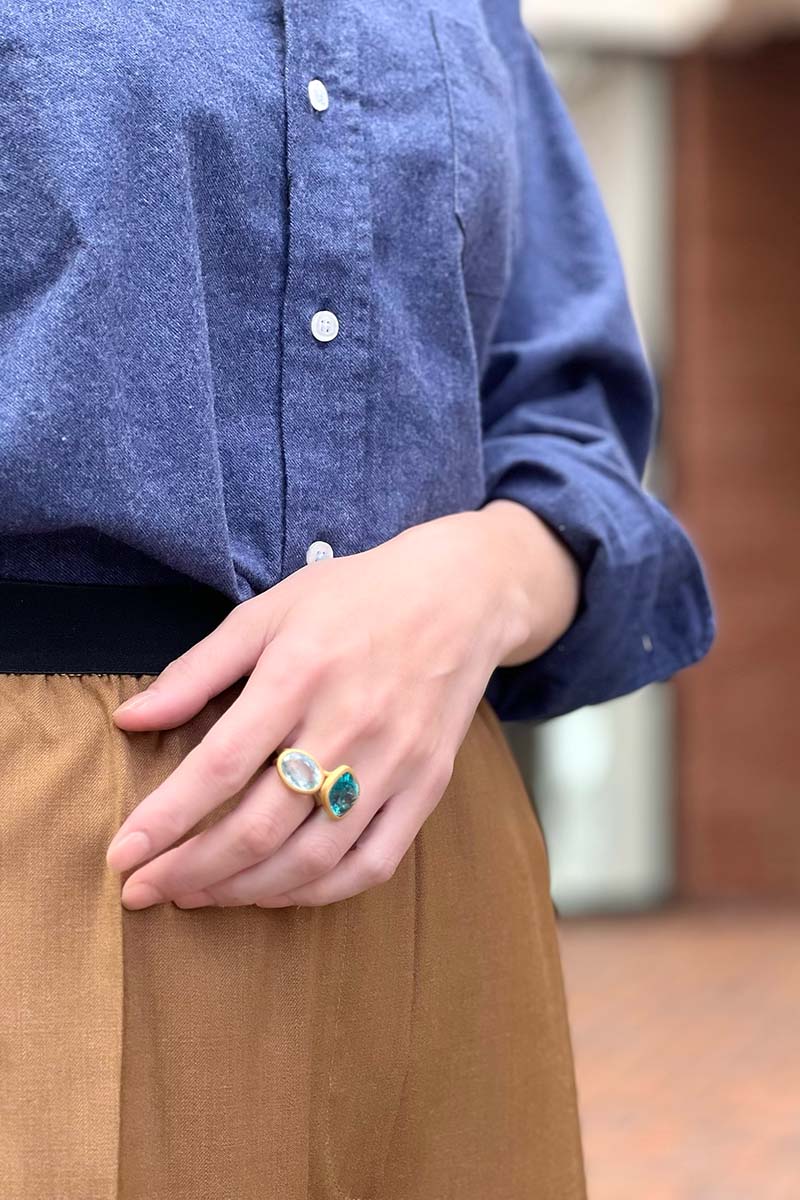「自分らしくありたい」。ファッションを愛する人なら誰もが思うことだろう。素敵な女性を観察すると「ジュエリーを身につける」というのが、自分らしい着こなし術のひとつであることが見えてくる。天然のストーンをカジュアルに毎日楽しむのが、RIVERUSの今の気分。不揃いだったり独特だったり、自然が生んだ「唯一無二」が、装いに特別な何かを与え、着こなしにその人らしさをもたらすから。同系色はもちろん、好きな“色”と好きな“石”とか、気分に合わせて重ね、個性を演出するのが素敵。どれもが皆世界にたったひとつだけだから、出会いを大切にしてほしい。