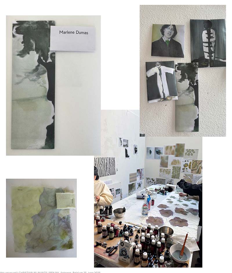 2026 SPRINGのCHRISTIAN WIJNANTSの今回のイメージソースは、オランダを拠点に活動するアーティスト マルレーネ・デュマスのアート。彼女の絵は美しい色彩と透明感の中に、複雑、不安定な感情を思わせる。絵に釘付けになってしまう、ざわざわとした心の揺れ動きのような絵。このような絵画が存在していることを知ることはファッションの醍醐味の一つだと思う。ファッションに触れていることで知らない世界をひとつ知ることが出来た。