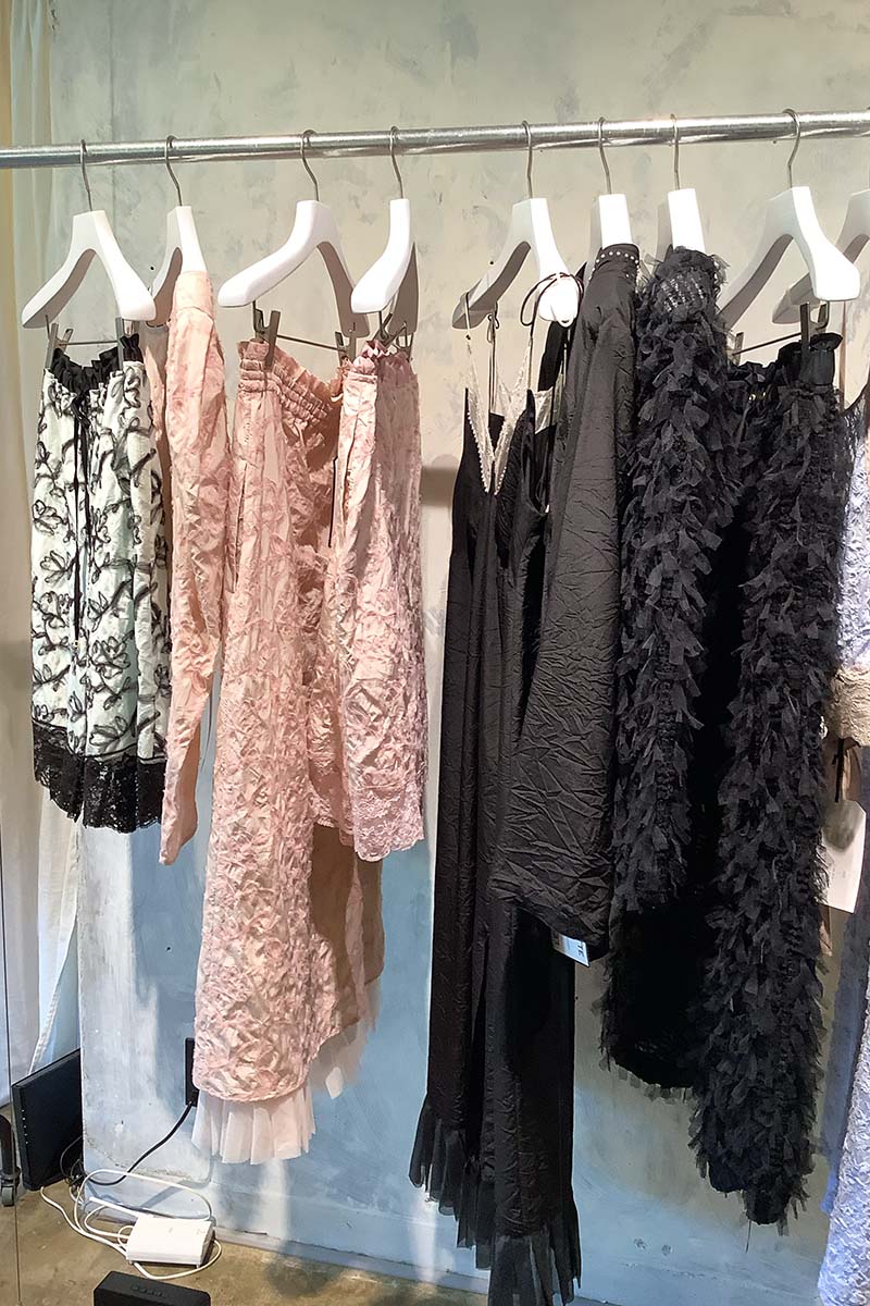 LEUR LOGETTEを知ったのは、10年以上前のニューヨーク。先見の目と感性を誇る著名なショールームで、新しい日本のブランドとして、アメリカのマーケットに紹介され始めたコレクションを見たのが初めての出会い。当時はガーリーな要素がかなり強めのデザインだったので、紹介を頂くだけで終わったが、既製品ながらもハンドメイドの要素を用いた洋服は凝っていてとても表情があり印象的だった。