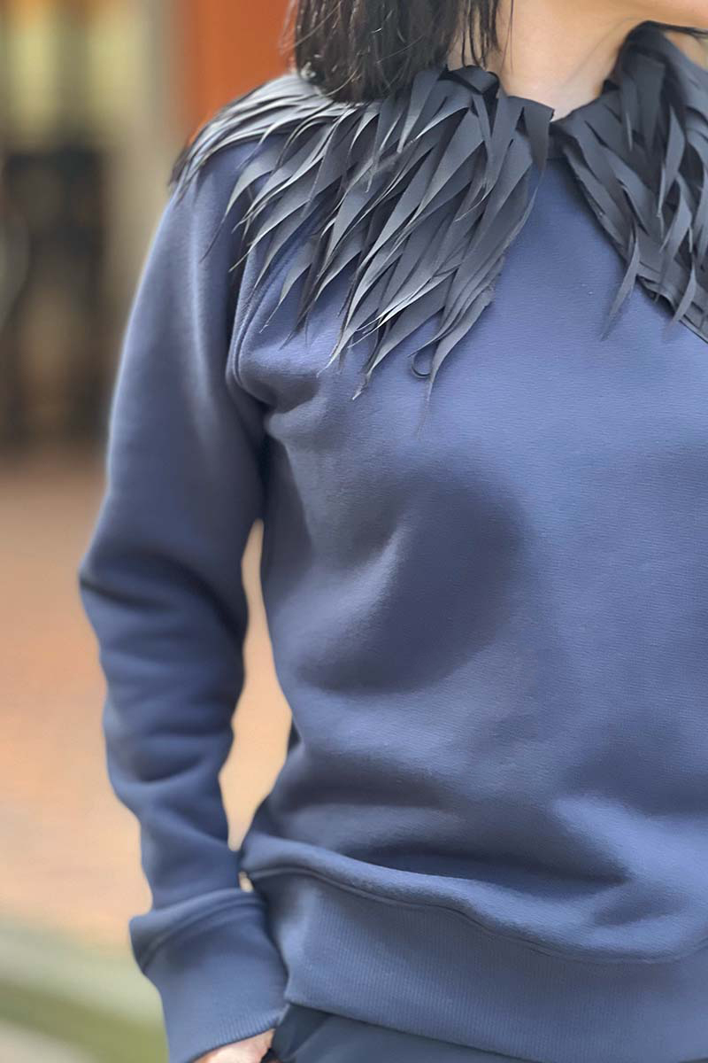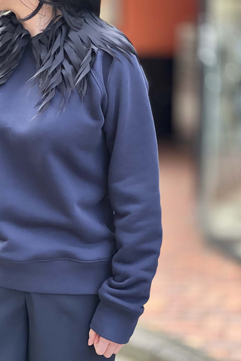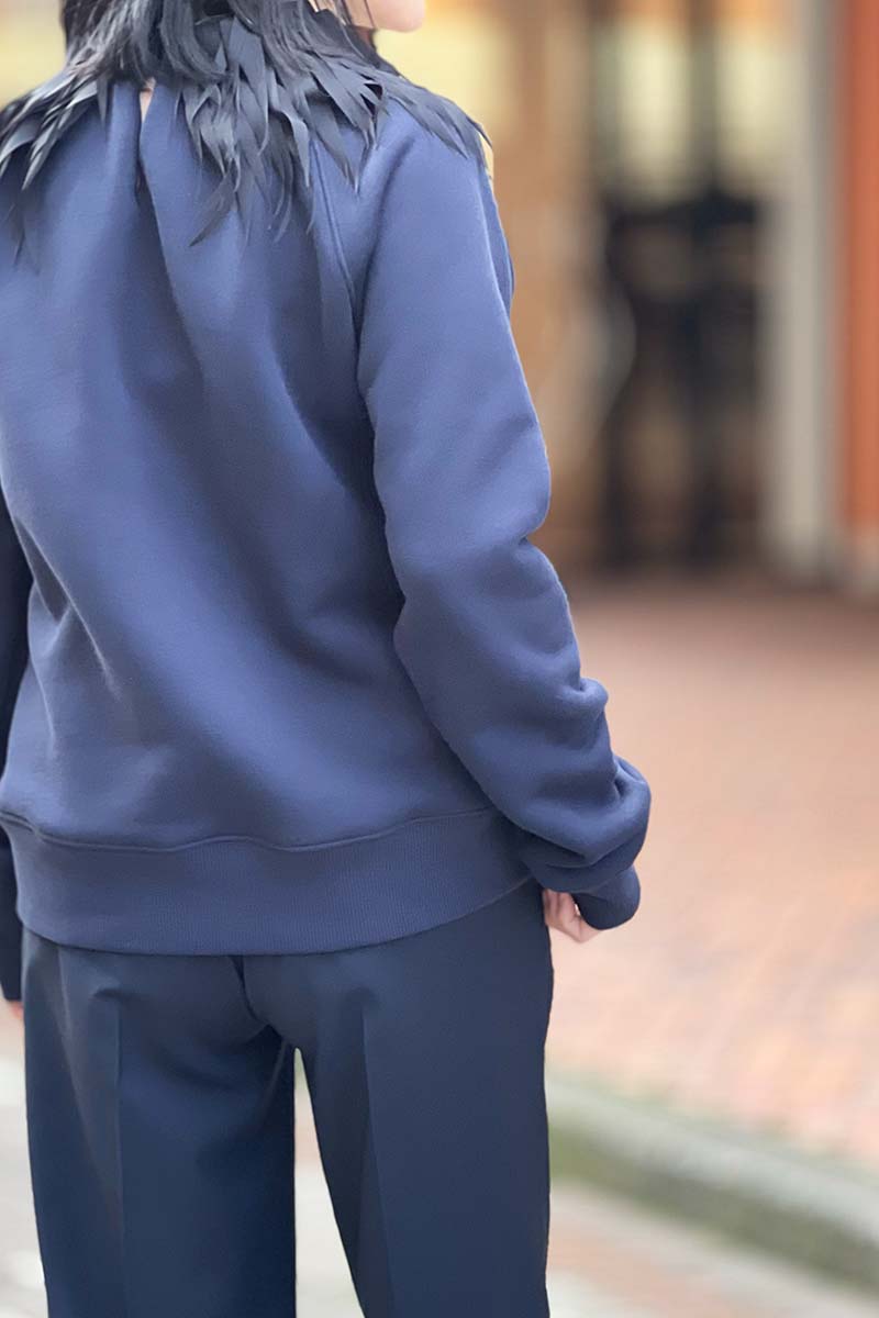 まるでフェザーを思わせるモチーフがなんとも楽しいスウェットです。アカデミー賞のレッドカーペットでも、ハリウッド女優たちがこぞってフェザーモチーフを纏っていたのをご覧になりましたか?この一枚が持っているモードの気配を、リアルに、日常に楽しませてくれるN°21(ヌメロヴェントゥーノ)。おとなの日常着としてすっかり定着した「トレーナー」。ロゴやプリント、サイズ感だけでなく、全く新しい手法でのトレーナーで魅せてくれるクリエイティブな一枚です。ところで襟のモチーフは外して着ることも。華やかに、そしてシンプルにもと、女ごころをわかってくれる一枚なのです。